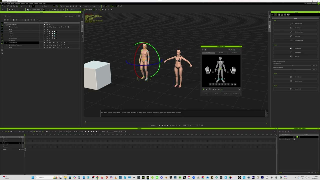 Trying to move objects, characters, limbs, doing other operations… etc. takes 5 seconds. Also CC4 crashed when I try to export as iAvatar, but I was able to save it to iAvatar from iClone 8.