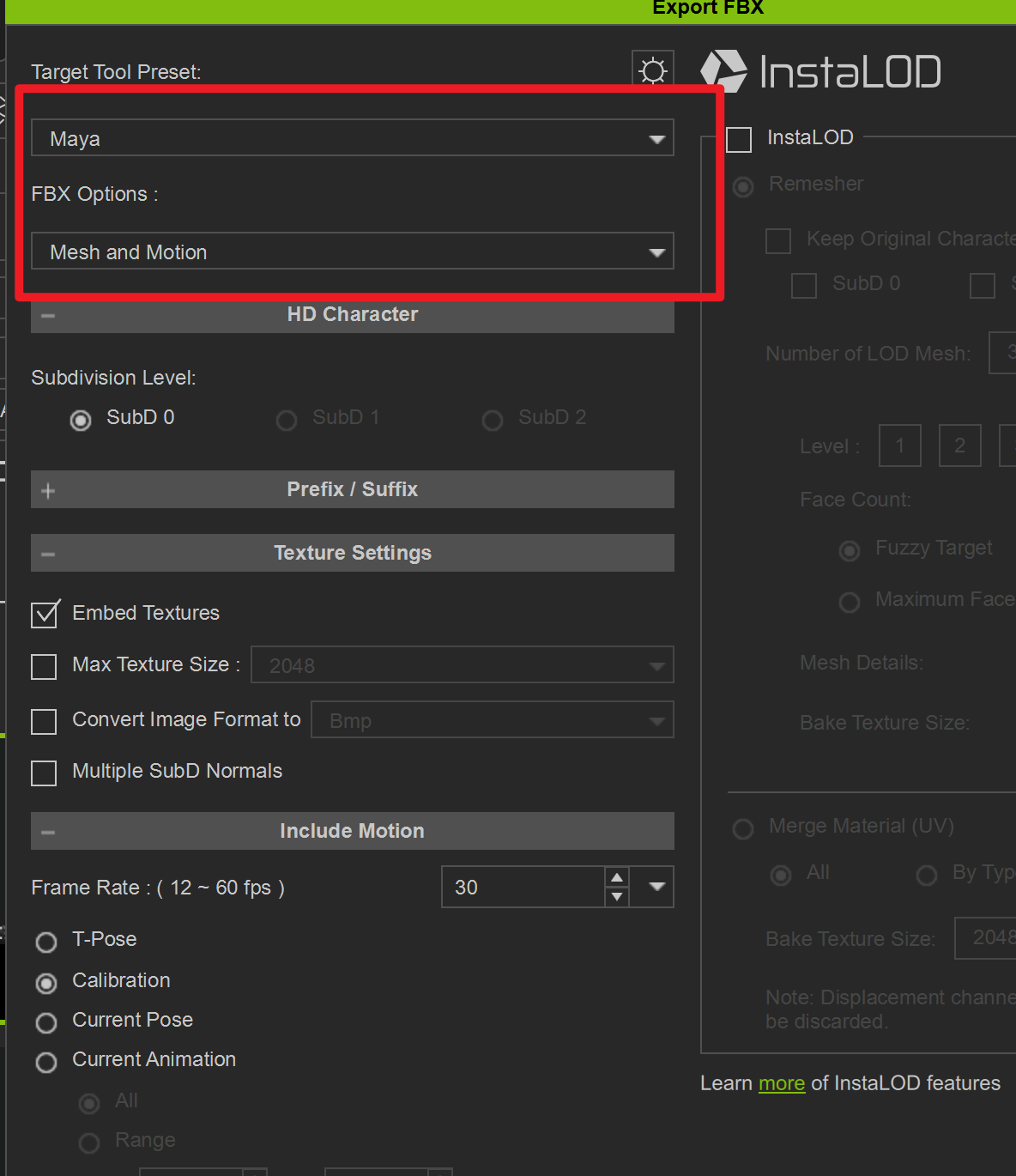 Why can’t I use the dropdown menu when I want to select UE5 preset options while exporting my model as FBX?