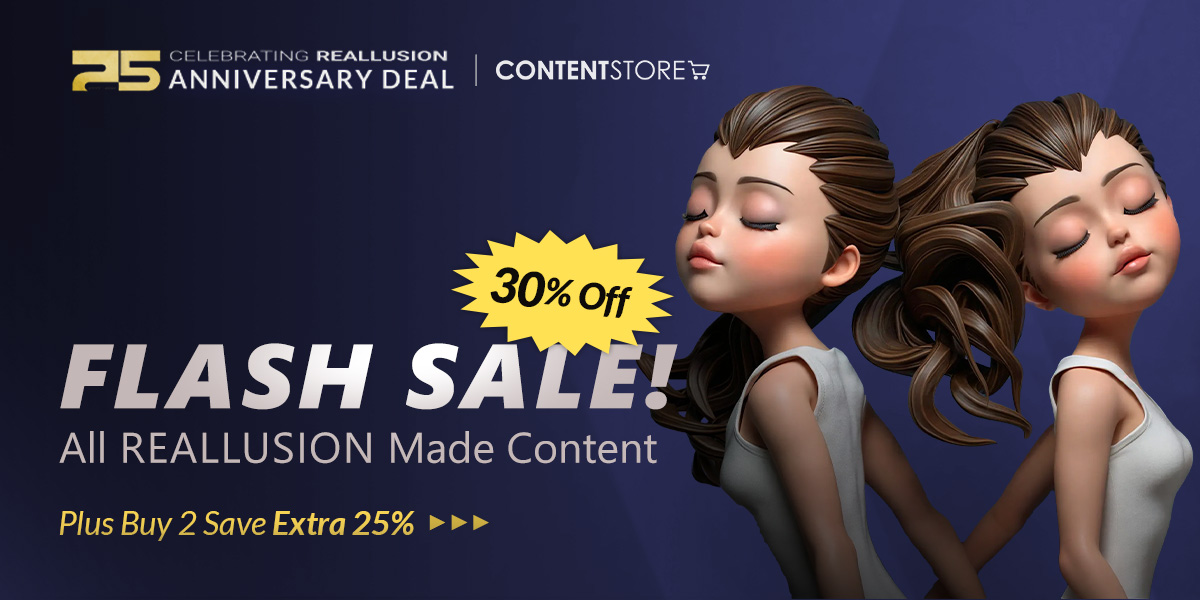 Right now you can get 30% off all Reallusion made content in the Content Store. Save even more when you purchase any two items! Shop now to save!
