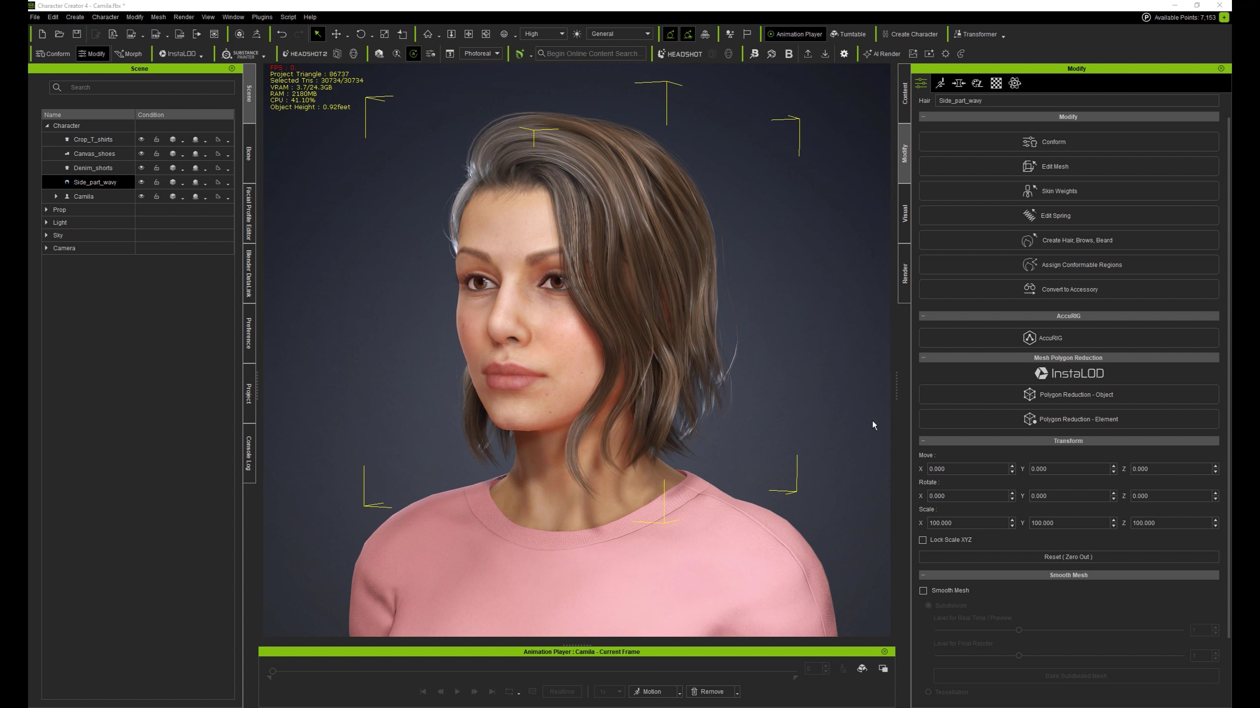 Take default “Side part wavy”. If you load clothed Camila, select Hair, then Conform and click Edit Range, you’d see that hair cards are black - meaning the range for all vertices is set to 0. Which in turn means hair would conform by large “scale” rather than “detail” when you morph head/face.
