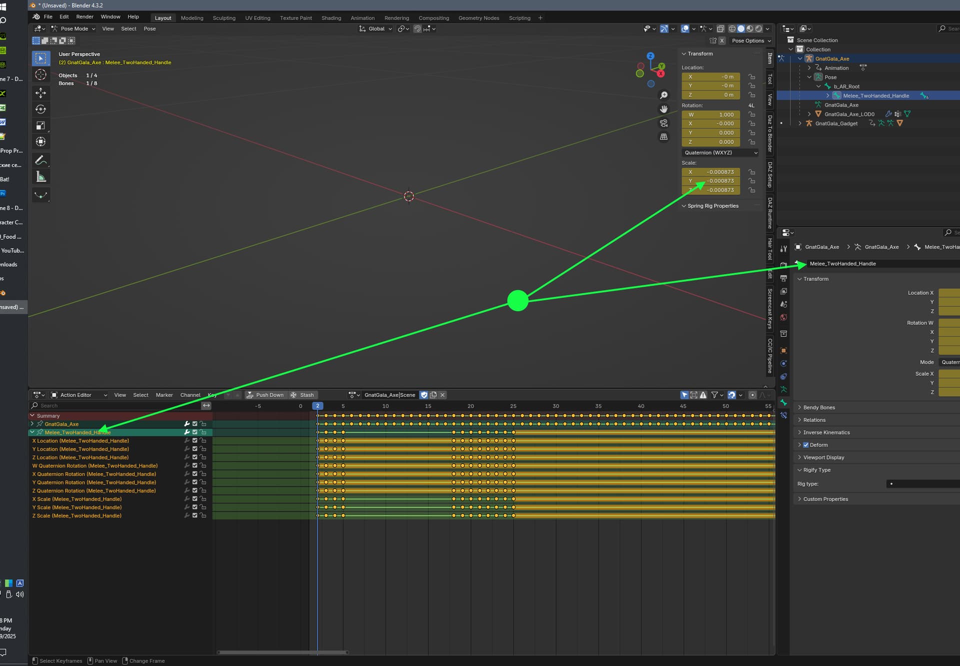 The bone a machete attached to, starts with a negative scale for XYZ and then frame 18 is also negative. It can be a small number but should be positive. Probably a bug in IC8.